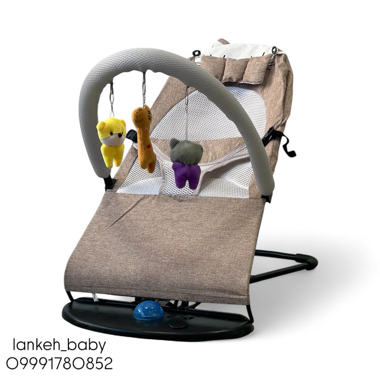 نی نی لای لای وارداتی (گهواره) نوزادی موزیکال و چراغ دار قهوه ای کمرنگ