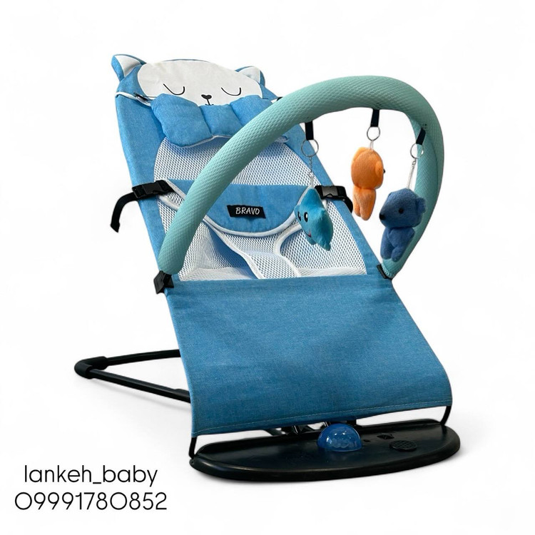 نی نی لای لای وارداتی (گهواره) نوزادی موزیکال و چراغ دار آبی